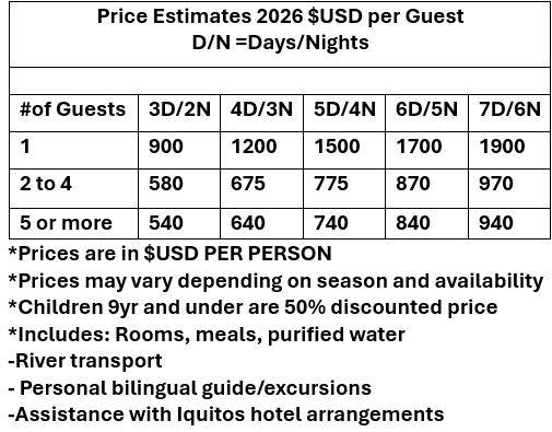 Price for standard Amazon River Experience